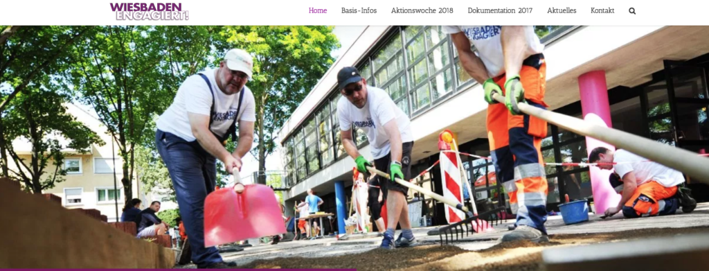Im Zuge der Aktionswoche Wiesbaden Engagiert! greifen jedes Jahr viele Mitarbeiter von engagierten Unternehmen als Unterstützer zu Pinsel, Hammer oder Schleifmaschine und setzen diese für den guten Zweck in Kindergärten, Seniorenheimen oder anderen gemeinnützigen Organisationen ein.
